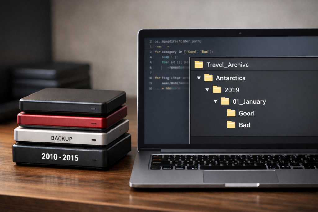 Over the decades, my wife and I have accumulated a digital ghost-library: 2 terabytes of raw light and sound. It was a labyrinth of folders—some titled by country, others merely by the name of the camera that bore witness to the scene. It was a cartographer’s nightmare. Every time I considered organizing this mountain of memory, I felt a shivering inertia. To touch those files was to be buried by the sheer volume of our own history.